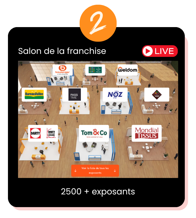 Rejoignez le salon virtuel gratuitement aujourd'hui et découvrez 2500 franchises.